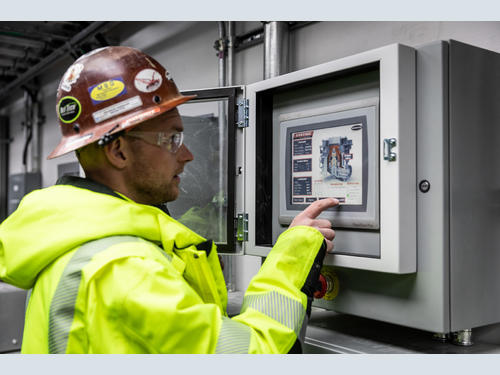 A major advantage is safely controlling motor starts and stops with one touch on the screen. This ensures that the crusher is always safely starting up and shutting down in the proper sequencing (without operator intervention) to protect machine performance. A one-touch start and stop feature eliminates the need for an additional box for electrical push buttons in the tower.
