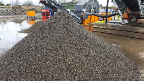 The plant is processing a mixture of materials which includes utility waste, track ballast and material from road maintenance programs.