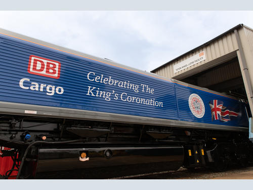 DB Cargo UK has unveiled a new-look Class 66 locomotive (66023) to mark the coronation of King Charles III.