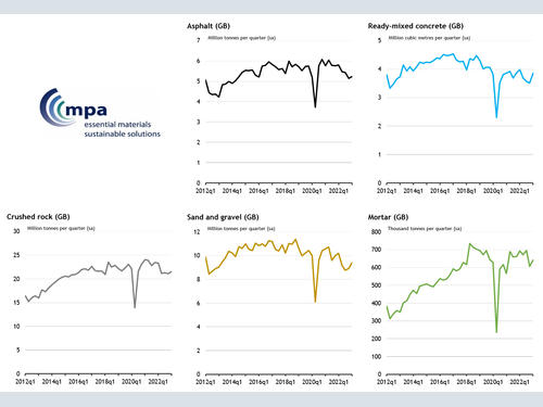 Sales volumes for ready-mixed concrete in Great Britain rose by 9.8% in the first quarter compared to the previous three months, with mortar sales up by 6.0%, primary aggregates (crushed rock, sand & gravel) by 3.3% and asphalt by 1.8%. This comes after a near year-long decline in demand for these materials, according to the Mineral Products Association (MPA) industry sales survey, which provides time series sales volume data stretching back over 20 years.