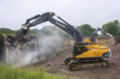 Bringing heavy-duty demolition down to size is the job of two Volvo excavators – in the hands of deconstruction experts, Skillings Crushing Construction.