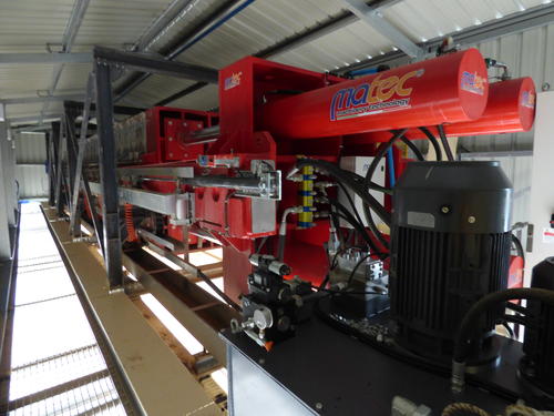 “The water treatment system at Crievehill receives dirty water, from the washing plant and has two purposes. Firstly, the water is clarified and recycled the water and secondly the sludge is concentrated in preparation for further pressing. The dirty water coming from the cyclone overflows are mixed with a polymer flocculent solution and fed into the thickener tank. The sludge settles quickly at the bottom of the thickener where it is concentrated and gathered into the pumping cone due to the slow movement of a scraper inside the tank. The concentrated sludge is then pumped into a mud buffer tank which homogenises the sludge before being pumped to a Matec 2000 x 1500 x 140 filter press where it is pressed to produce a dry cake. The water from the pressed sludge is recycled to the washing plant. The clean overflow water from the thickener tank is discharged into the clarified water storage tank, where the water pump delivers it back to the washing plant. The finished products are 3mm sand, 5mm sand, 6-9mm, 10-12mm, 13-15mm with all +15mm going back to the crusher and returned to the washing screen for re-processing.”