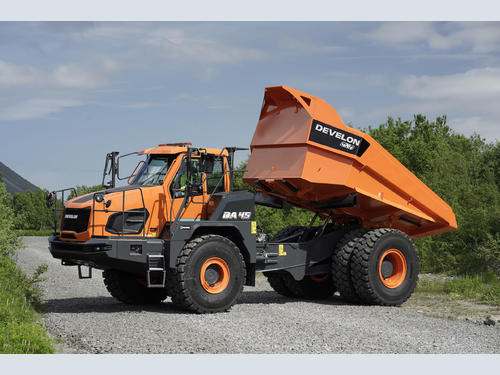 The DA45-7 4x4 ADT is Develon's first dump truck with 4x4 drive. The new 4x4 version of the DA45-7 ADT is intended to challenge rigid dump trucks in the 40-tonne class. With its 4x4 design, the new version of the DA45-7 is better at handling bad roads, smoother driving surfaces and steeper terrain than rigid dump trucks. The DA45-7 4x4 ADT also has a better turning radius than comparable rigid dump trucks.