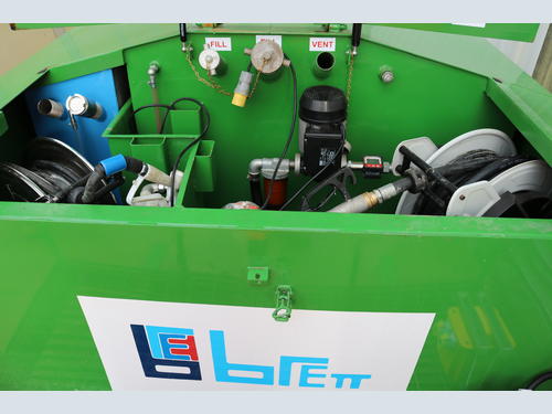Under the lid you will find two 110V pumps (one for diesel, one for AdBlue) and hose reels in order to easily manage longer lengths of hose.