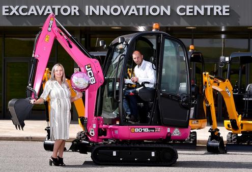 The pink machine is already turning heads while on permanent hire to south Yorkshire-based utilities company DKS Utilities, working on projects for Yorkshire Water, Anglian Water and Welsh Water. DKS already has two other JCB mini excavators on hire from Hardwick Plant.