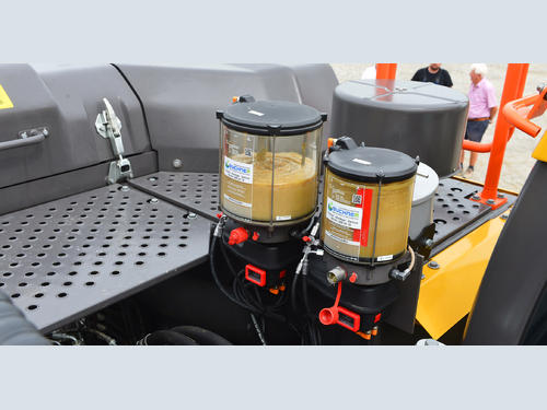 Another special feature of this machine is the presence of two different central lubrication systems which work independently of one another. This design allows for a biodegradable lubricant to be used for the underwater tasks with the long boom, preventing any groundwater contamination, even in the event of a faulty pipe. This aligns with guidelines set by the local water management authority.
