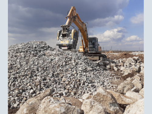 Bulgaria - The redevelopment of the area where the largest steel complex in the country was active for 40 years - the Kremikovtsi plant, whose dimensions were comparable to a city - saw one of the largest models of crusher buckets at work, the BF135.8. On a 45-plus-ton Hyundai excavator. Vast quantities of reinforced C&D demolition material had to be processed in an area of ​​approximately 12 million square meters. For this reason, the MB Crusher bucket was chosen. A flexible piece of equipment, easy to transport and use, capable of a high hourly production, and capable of crushing the reinforced material without any problem. The reinforced concrete is crushed to the desired output size, and the iron separates quickly from the aggregate pile. At the same time, a lot of truck trips - and pollution - are reduced.