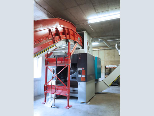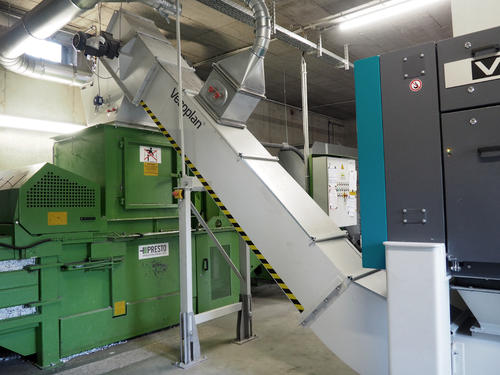 To keep downtimes as short as possible, the plan was to replace the old shredder with the new VIZ on the fly. Installation was scheduled for October 2024. The challenge was to fit the machine into a cramped and awkward-to-reach space. To do so, Vecoplan constructed a deeper feed chute so that the new shredder could be seamlessly connected to the existing infrastructure. The external peripheral systems comprised a feed belt and a bale press. Vecoplan also supplied a drag chain conveyor for moving shredded material to the press. The dimensions of the VIZ were adjusted to take account of the low ceiling.