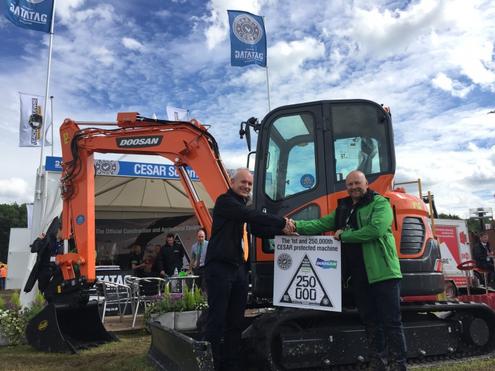 At the recent Plantworx 2017 Exhibition, a new Doosan DX85R-3 mini-excavator was unveiled as the 250,000th CESAR marked machine in the UK. The official CESAR Scheme is owned by the UK’s Construction Equipment Association (CEA), the organisers of the Plantworx event, and is the number one anti-theft and recovery system for plant and agricultural equipment. CESAR was launched in 2007 to help combat the theft of equipment which was estimated to be costing the industry £1 million a week at the time.