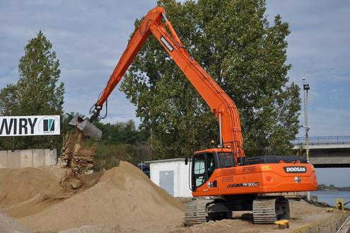 In Szczecin in Poland, a new Doosan DX300SLR-3 extended boom excavator has been purchased by SzczeciÅ„skie Kopalnie Surowców Mineralnych S.A. (SKSM S.A.), which is using the new machine on the Regalica trans-shipment wharf in Szczecin, primarily for unloading aggregate from barges. The latest purchase from the Doosan range of Stage IIIB compliant excavators introduced to the Polish market two years ago, the DX300SLR-3 excavator was supplied by Grausch & Grausch Maszyny Budowlane Sp. z o.o., the exclusive Authorised Dealer for the Doosan construction equipment range in Poland.