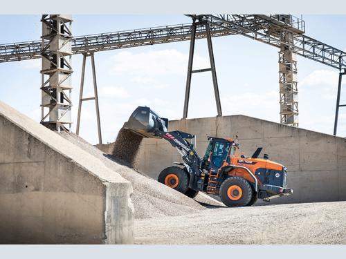 The Z-kinematic lift arm on the DL420CVT-7 delivers high breakout forces and lifting capacities, especially for heavy materials, and a large dump angle for efficiently unloading sticky materials. An optional high lift arm is available where higher dump heights and increased versatility are required. Doosan is also offering a wider choice of options to provide more work tools for a better match with applications, further increasing output.