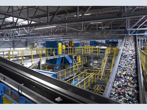 The plant processes a very heterogeneous material input, which goes through a pre-sorting that uses a STADLER ballistic separator PPK2000 at the end of the line. It continues with a bag opener, two STADLER ballistic separators STT5000, 2 magnets, 9 optical sorters, an eddy-current separator and a suction system.