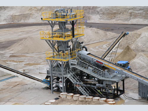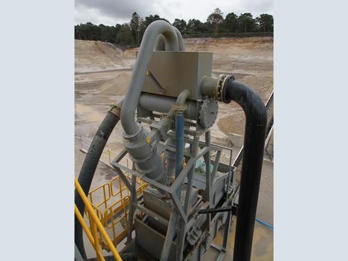 “Material is fed to the pump from where it is then fed to the hydro cyclones, which recover down to 30µ and eliminate undesirable particles (clay, silt, etc.). The washed product discharged from the hydro cyclones is then delivered to the dewatering screen to reduce the moisture content of the final product and thus obtain an easy-to-handle, top-quality material. The hydro cyclone overflow containing rejected particles is discharged to the settling pond or can be reprocessed in the subsequent clarification and filtering stages, thus minimizing environmental impact and reusing the water employed in the process.”
