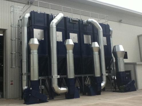 The reverse jet filter system offers an effective air cleaning system to remove dust particles from the conveying air stream to well below current COSHH levels. The system also offers significant energy savings, generated by recycling the heated air back into the production area.