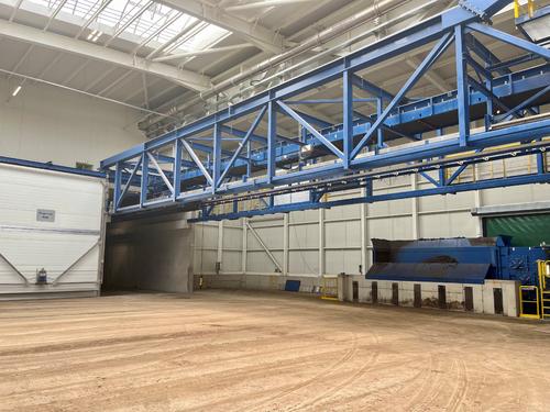 Eggersmann Anlagenbau replaced an aging composting plant of the "Wendelin" type with state-of-the-art technology. Due to the hall geometry of the old plant, the longest Eggersmann rotting tunnels to date, 42 metres in length, were built here. A total of 8 rotting tunnels with tunnel filling unit as well as the associated conveying and exhaust air technology were included in the scope of supply. In addition, a FORUS shredder, a TERRA SELECT trommel screen and a star screen deck, also from Eggersmann, are used in the new plant - all are operated purely electrically.