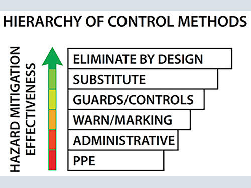 When examining the safety of a system, improving efficiency and reducing risk can be achieved by utilizing a hierarchy of control methods for alleviating hazards. The consensus among safety professionals is that the most effective way to mitigate risks is to design the hazard out of the component or system. This usually requires a greater initial capital investment than short-term fixes, but yields more cost-effective and durable results.