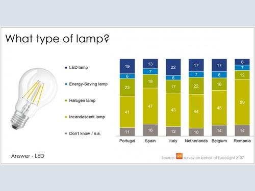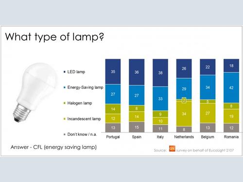 The results reveal that citizens from the six countries surveyed were not sure how to distinguish between energy-saving, LED, incandescent and halogen lamps when shown images of the lamps.