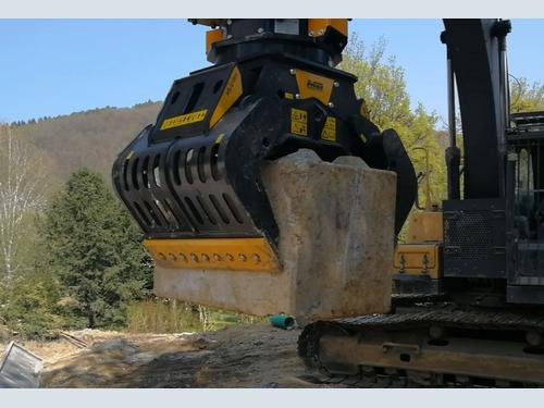 This new model also comes with an inclined plate, allowing the unit to work regardless of the angle, and has the 360° hydraulic rotation, allowing the grapple to pick up materials in all working conditions efficiently.