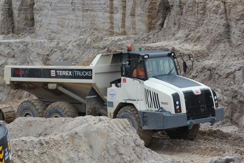 Operating in a 50-mile radius within Dorset, G Crook & Sons has premises in Dorchester and Poole. One such is the Redbridge Road quarry, where the family-owned business is using four of Terex Trucks’ TA300s to transport sand from the pit to the stockpiles. Fitted with the Scania DC9 five-cylinder 9.3-litre engine, the 28-tonne (30.9-ton) capacity articulated haulers work a minimum of eight-hour shifts daily.