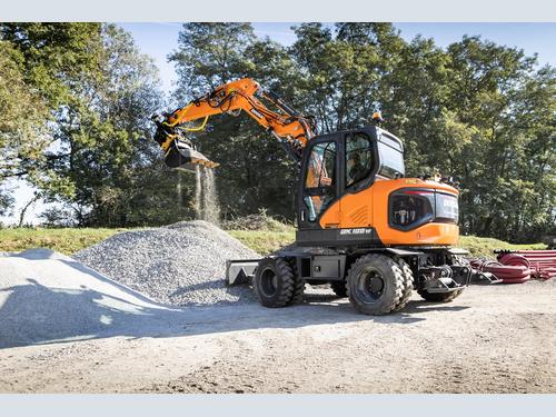 The articulated boom ensures that the operator is able to position the machine as close as possible to trucks during loading. In addition, the DX100W-7 offers maximised lifting capacities and digging forces, as well as satisfying a requirement in some countries for a wheeled excavator with a travelling height of under 4 m.