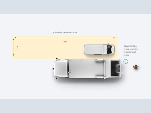 Known for its collaborative approach to product development, Fleetclear was approached by Serco, leading provider of public services, following an incident involving one of its crew members who was struck by a vehicle overtaking one of its refuse collection vehicles as part of its Sandwell contract.