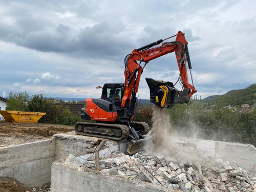 Moving to the heart of a city in Southern France, here’s a construction site where our customer needed to demolish a building from the 1930s to create a new residential complex with 26 units. In this case, using MB Crusher’s BF90.3 crusher bucket and installing it on a Liebherr 924 excavator, made it possible to crush all of the reinforced material, separating it from the rebar and reusing the new aggregates for the parking lot’s foundation. The site manager says: “An excellent economic and environmental benefit that speeds up the job: we quickly got rid of the iron without an issue.”