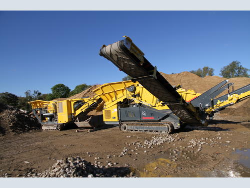 The K4 Mobile Scalper Screen and the B3 Mobile Jaw Crusher are currently employed on recycling duties at Little Paxton, working in tandem processing a mixed feed of incoming material which is providing the company with saleable recycled aggregates.