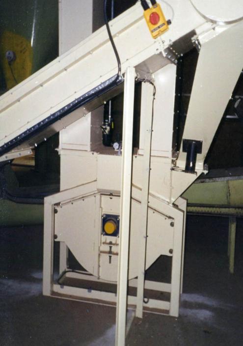 The problems of belt tensioning have been solved using pre-set pneumatic cylinder pressure and the belt alignment and bucket-to-base clearance are manually set to suit individual production requirements. Self-cleaning is achieved using a wiper arrangement located the elevator boot. This wiper removes any trace of the conveyed material from both the boot and buckets on a continuous basis. Replacing the blade when it becomes worn is a simple operation. However, should it be necessary - as it might be if the product has poor flow characteristics - the boot can be linked to a compressed air line for the removal of any remaining material.