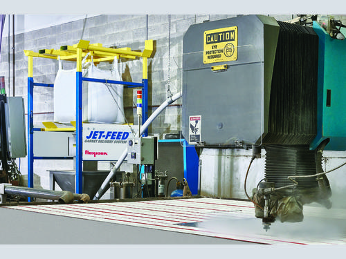 A new JET-FEED™ Garnet Delivery System from Flexicon automatically feeds garnet directly from bulk bags to waterjet cutters, eliminating worker fatigue, potential injury, labour, spillage, dust, downtime and higher material cost associated with manual dumping of bags typically weighing 25 to 50 kg.