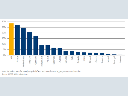 MPA Director of Economic Affairs, Aurelie Delannoy, said ‘our industry can be proud of the leading role it is playing internationally in maximising the recycling of construction and demolition waste as aggregates. Taken together with the restoration of mineral extraction sites to beneficial after use, the industry is delivering sustainable environmental results whilst others just talk a good game. Having achieved what is likely to be the most we can recover from the waste stream, the focus now has to be on moving recycled and secondary waste up the value chain, and accepting that around 70% of future demand has to be supplied by primary aggregates through the planning system. The MPA has submitted proposals to reform the system as the replenishment of land won reserves, particularly sand and gravel, continues to be unsteady and inadequate.’