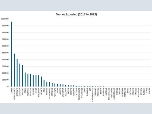 Year-on-year, despite increases in material being recycled in the UK, quantities of plastic waste exported for recycling from England have increased by more than 10% to just over 600,000 tonnes. Of this, more than 25% was sent to Turkey, 25,000 tonnes more than in 2022. This also means that just short of 1 million tonnes of plastic has been sent to Turkey for recycling since 2017.
