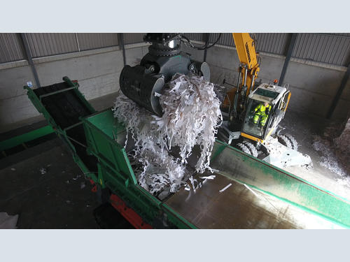 As part of their recycling process, Parry and Evans shred their paper reels, cores and paper bundles to reduce the volume of the material. This enables them to produce denser bales and reduce transportation costs.