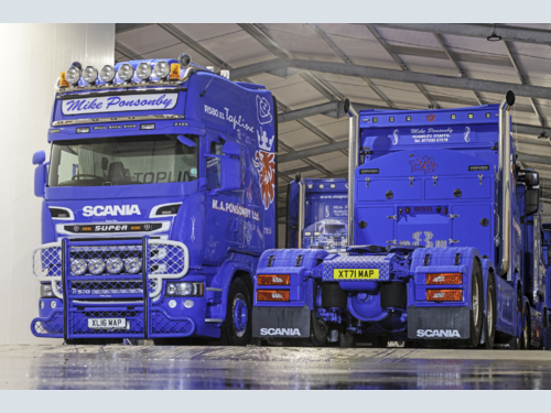 MA Ponsonby has grown from one truck operated by founder Mike Ponsonby into a thriving business with more than 15 Scania trucks and a large fleet of specialist trailers. Mike is still managing director while his son Jack is operations director. Two more sons are specialist HGV drivers.