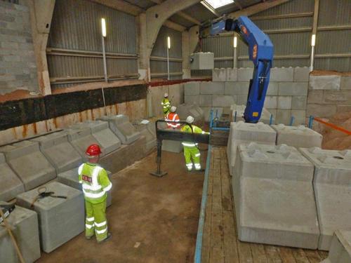 CLM took on the task of casting level plinths onto which the blocks could be placed and organised the timing of installation of the blocks by making sure the salt already stored on the barn was moved over to one side.