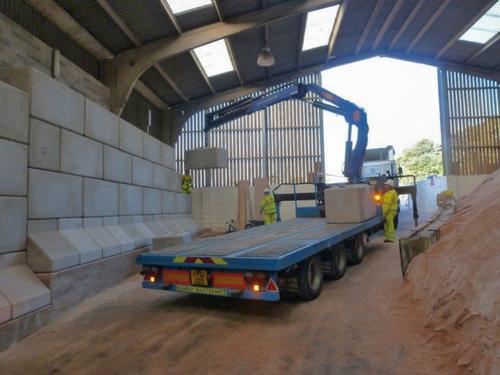By close liaison between CLM, AA Installations and Elite Precast Concrete the blocks were safely installed in two parts – one side of the salt barn and then the other – thus insuring minimal disruption to the day-to-day running of the facility at Hilton Park.