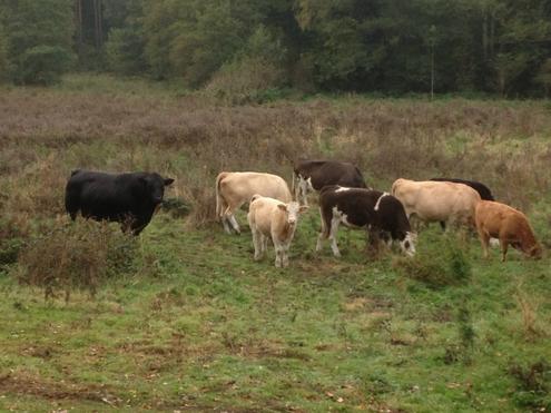 Over Autumn approximately 30 cross breed cattle have been gentling munching their way through weeds, rushes, herbs and general vegetation as well as trampling down the ground, which pushes seeds into the soil helping to promote germination for next year’s plants.