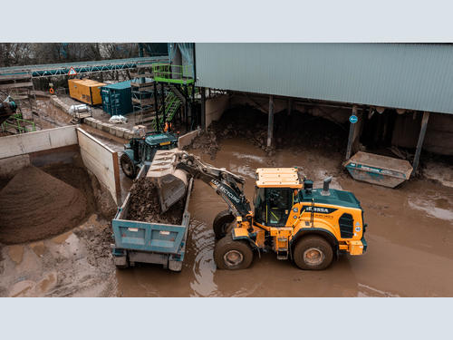 Sitting on just 3 acres, the site has been designed to make the most of the space, or lack of. A one-way system allows vehicle to drive past the small material bays where Paul is able to put the manoeuvrability of the Hyundai to the fore picking the relevant material from each bay and quickly loading each truck. Fitted with a hydraulic quick coupler allows Paul to swap buckets between material with the sticky clay dropping off the presses at the end of the wash plant using one bucket and a clean bucket for outgoing aggregates. “Both myself and the lads on the plant won’t tolerate any cross contamination between materials.” Rob pointed out. “We charge a premium for the recycled material as it is as clean as virgin material would be and that is part of our guarantee to our customers. If it doesn’t meet their specification, we will refund them, and these instances have been very few and far between.”