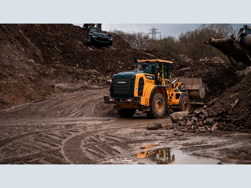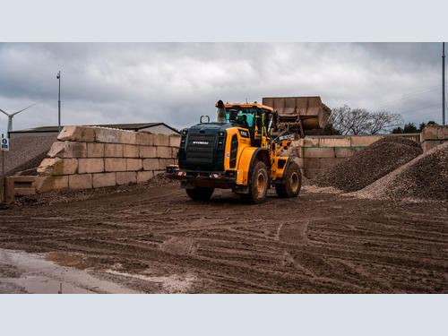 The HL955A is powered by a Stage V Cummins 6.7 litre engine delivering 210hp and 990Nm of torque and is mated to a 4-speed powershift transmission. With an operating weight around the 16-tonne point and carrying a straight-edged bucket with a 2.8m3 capacity, the wheeled loader has really impressed full-time operator Paul Julian. Paul has been a machine operator for ‘more years than he cares to remember’ spent mainly on excavators but has settled down to enjoying life behind the steering wheel of the Hyundai. “It’s a great bit of kit, very comfortable and manoeuvrable which is what we need on this yard as the space is limited.” Paul commented. “It’s a powerful little loader and handles both the screened oversize for crushing and the finished product equally as well.” With the yard being so compact, Paul is very pleased with the lightweight steering and 40° steering angle allowing him to nip around the yard with ease. “I’m kept busy all day, every day but get out of the cab at the end of the day not feeling exhausted.” He comments.