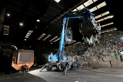 RiverRidge’s MRF at Coleraine is capable of segregating high value products found in the waste streams to a high quality for recycling or reuse. The MRF is also capable of recovering and refining Refuse Derived Fuel (RDF) which is exported to Europe for use in waste-to-energy plants. The company’s new Fuchs machine is fully occupied handling MSW and C&I delivered by RiverRidge’s large and varied fleet of skips and specialist waste collection vehicles. It is stockpiling the waste and feeding it into a Doppstadt DW 3060 for pre-shredding before it is fed into the MRF, which is housed in a tailor-made building. Being used under cover, the zero emissions of the electrically powered machine, coupled with its extremely quiet operation and minimal heat output, are highly beneficial features which contribute considerably to the working environment. Additionally, since RiverRidge Recycling has taken the prudent and self-sufficient step to capture the landfill gases on the site to generate its own electricity, the running costs of their new materials handler are fairly insignificant! In fact, RiverRidge estimates that the comparative operational saving on the new Fuchs machine over a conventionally powered materials handler is around £20,000 per annum.