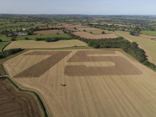 A huge ‘75’ artwork visible from outer space was carved into a Staffordshire stubble field to mark JCB’s impending 75th birthday.