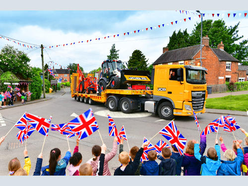 The JCB machines - including a backhoe loader in Union Flag livery - began their journey to London with a rousing send off from pupils at All Saints CE Academy in Denstone, Staffordshire, near to JCB’s World HQ in Rocester.