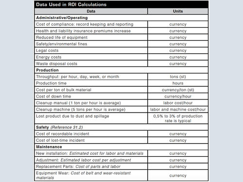ROI is extremely important in any equipment purchase but calculating it can be tricky. That is why all direct and indirect costs need to be applied. The goal for many smaller projects such as belt cleaner upgrades is to get the payback period to 1 year or less. [Fig.1] Categorize all possible causes of increased costs and then figure out the costs associated with each category.