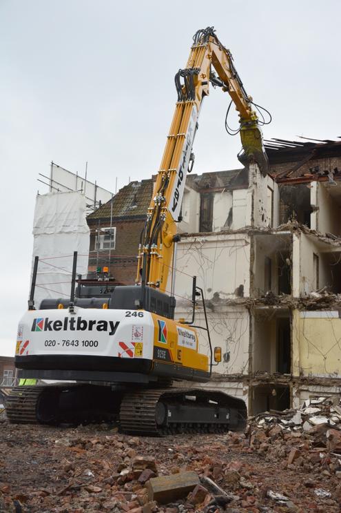 The machine, which has a reach of 16 metres, was put straight to work on an environmentally sensitive project in the upmarket area of Hampstead in the Borough of Camden. The job involved the demolition of an old nurse’s home, which has laid derelict for over 10 years and which once razed to the ground, will become the site for the development of 17 luxury flats, ranging in price from £1.7 to £27m for the penthouse suite.