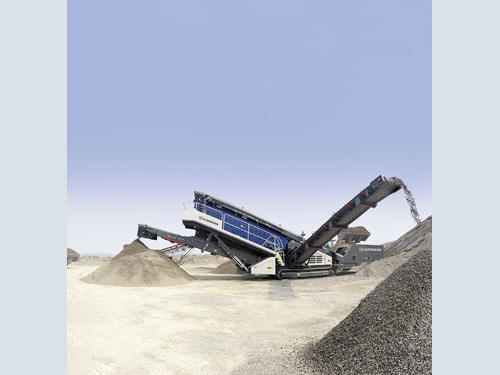 Operation of the screening plant is via a mobile control panel that can be attached at three different points on the plant. This guarantees the best viewing positions of the executed plant functions. All plant functions are started automatically – without each side discharge conveyor having to be activated individually. Data on machine operation can also be read off at the control panel. The plants are particularly efficient when interlinked with Kleemann crushing plants in the PRO and EVO series. The optional line coupling can guarantee the emergency-stop function and thus safety in all crushing and screening stages.