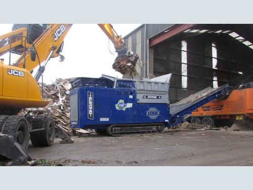 McKinstry’s Skip Hire extract wood mainly from council operated sites around Northern Ireland along with an additional source from Southern Ireland to ensure material supply in periods of any downtime in the industry. Supplying 1,000 tonnes per week minimum to Lisahally Power Station to a P63 grade, the wood waste when it arrives to the Crumlin site undergoes a quick manual pick through to remove as much contaminates as possible. The high grab then puts the wood waste into a high speed shredder. The shredded product goes through a series of overband magnets, twin deck horizontal screeners and eddy currents to remove ferrous and non-ferrous metals, dust and oversize product.