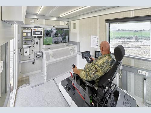 For this reason, the machine design was developed for teleoperation along with a container fully equipped for remote radio control of the machine. “Using this new design, we can effectively deploy equipment both for dangerous operations on the military training ground and difficult environments in disaster recovery. This also includes driverless support operations over the most difficult terrain, such as landslides or for road clearance with the army corps of engineers,” noted Lieutenant Colonel Wurth.