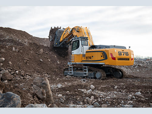 The R 976-E electric crawler excavator, along with the R 980 SME-E, replaces the ER 974 B for mine and quarry extraction. The latest electric excavators to be developed and produced by Liebherr-France SAS in Colmar, France, they are not just converted diesel machines. The excavators and their electric power system were designed and produced entirely by Liebherr.