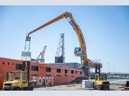 Bought to become the port’s new frontline handler, the machine has impressed with its all-round abilities. ‘We are very pleased with the Liebherr’s ability and productivity,’ the Operations Manager commented. ‘It’s build quality is impressive and our operators like its power and comfort. The fuel savings and operational improvements we are gaining add to what we can achieve at the port.’