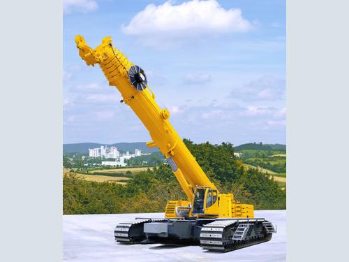 The basic machine, with crawler carriers one metre wide, weighs in at about 90 tonnes and has a minimum overall width of 5.01 metres. Without crawler carriers, the unit weighs about 54 tonnes, including the jack-up cylinders and the transverse beams, and is only 3 metres wide and 3.2 metres high. By removing the transverse beams, the weight can be reduced still further, to about 47 tonnes, which means that economical transport is guaranteed even in areas with restrictive weight regulations. The crane is capable of assembling itself. The basic unit is driven to the site on a low-loader, and then supports itself on the jack-up cylinders.Central ballast, transverse beams, crawler carriers, and superstructure ballast are installed without any need for an auxiliary crane.