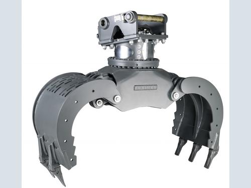 The SG 30B stone tongs is a special version of the sorter grab for the safe and efficient movement of large stones and blocks of stones. Here Liebherr also uses a very high proportion of components produced in-house. The large slewing ring and the massive hydraulic cylinder, as well as the inner hydraulic lines for attachment with LIKUFIX, ensure a longer service life of the tool attachment/implement. The buckets are secured to the mounting with Passfix bolts. The sealed and play-free bearings guarantee high reliability.